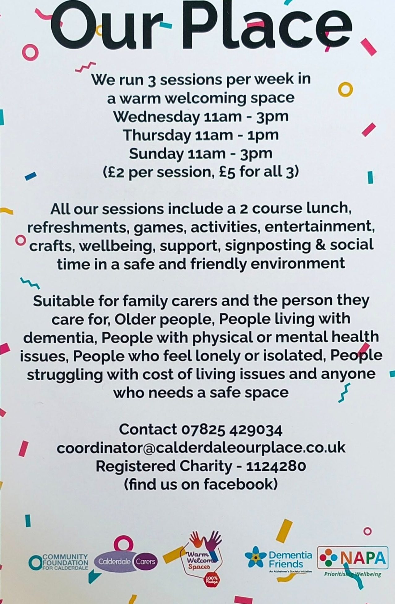 At Our Place Calderdale , we strive to be a beacon of hope and a support system for everyone in the Calderdale community who is in need. Our mission focuses on fostering a secure and welcoming environment where all individuals can find support and companionship.
